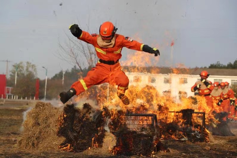 随着安全员一声令下,指战员一个接着一个跨过火栏、穿越火墙、冲过火廊。“火场心理行为训练是以心理学应激源与负性心理的辩证关系为依据,全面模拟森林灭火实战中的各种危险火环境,通过反复训练,达到强化应急反应能力和克服心理恐惧的目的。”分队长廖旺春说。